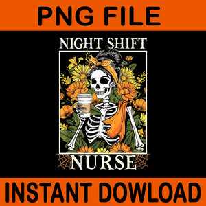 Floral Night Shift Nurse Skeleton Halloween RN Nurses PNG