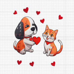 A Dog That Offers A Red Heart For Me A Cat On A Valentine Png, Dog Cat Valentine Png, Dog Valentine's Day Png