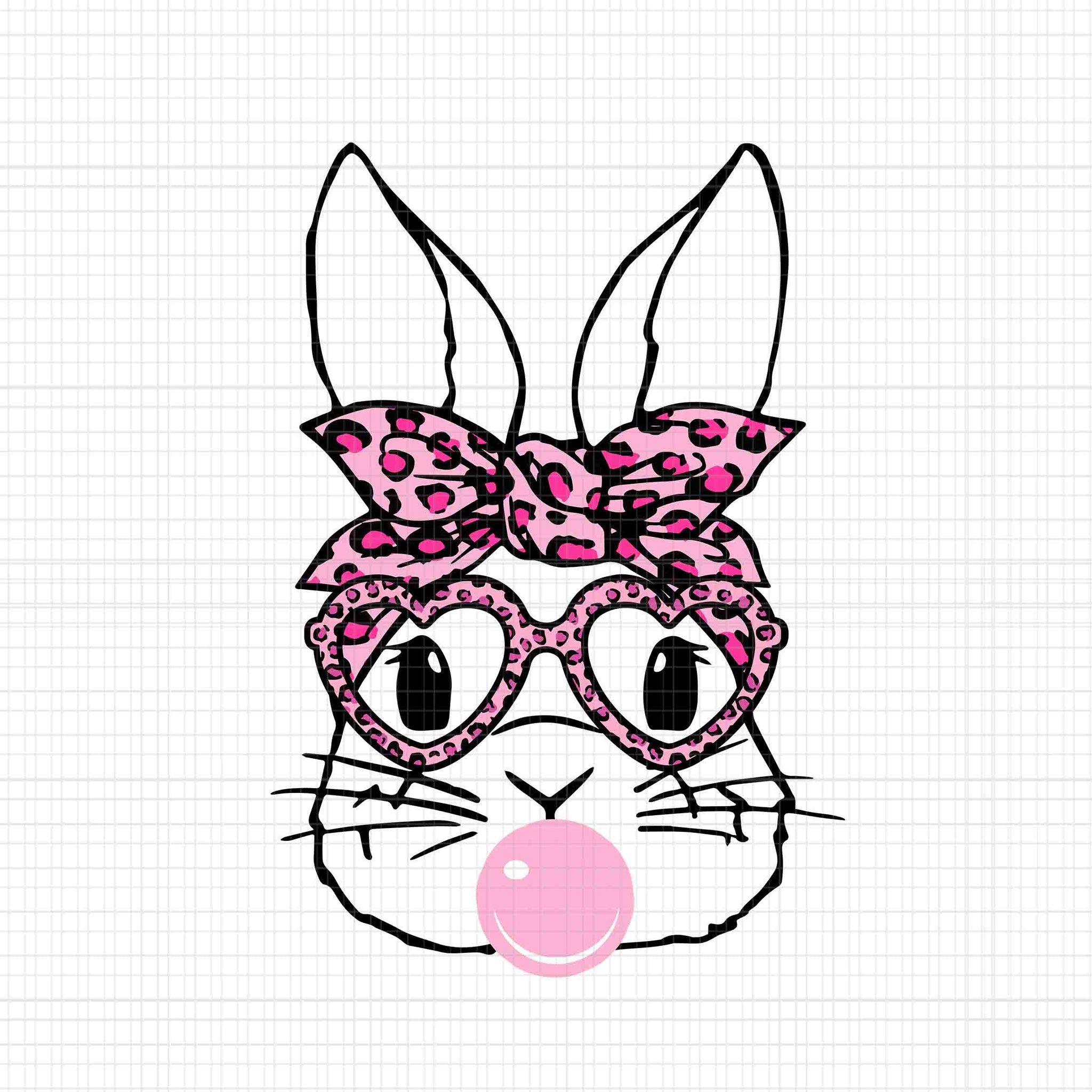 Bunny Face Leopard Glasses Bubble Gum Easter Day Svg, Bunny Leopard Glasses Svg, Rabbit Svg, Easter Day Svg