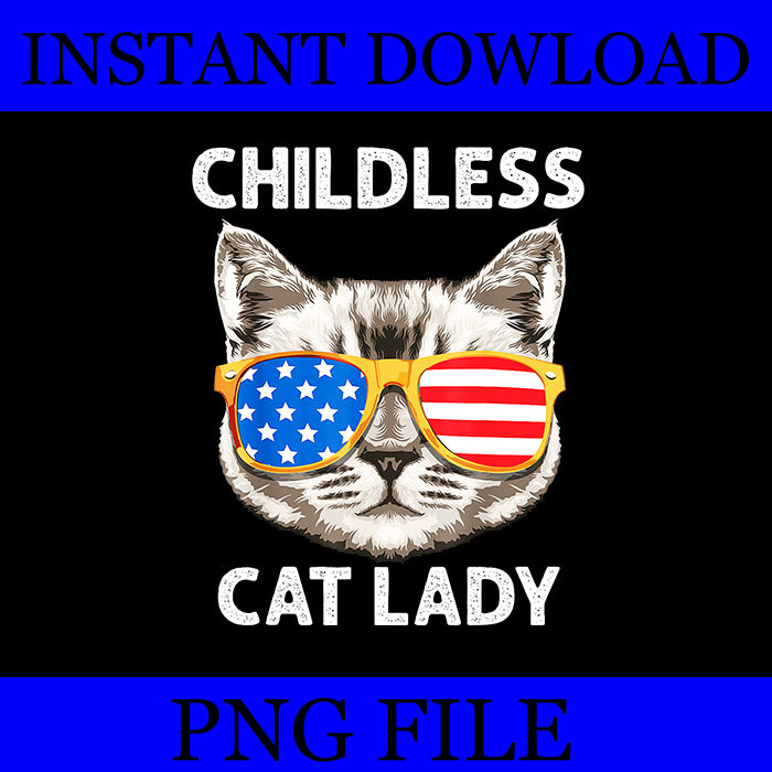 USAGE: Childless Cat Ladies Vote Blue Vintage Cat Usa Flag PNG