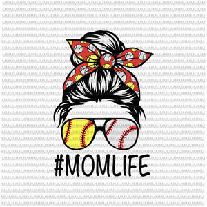 MomLife Svg, Womens Dy Mom Life Softball Baseball Svg, Mothers Day Svg, Messy Bun Svg, Mom Softball Baseball svg