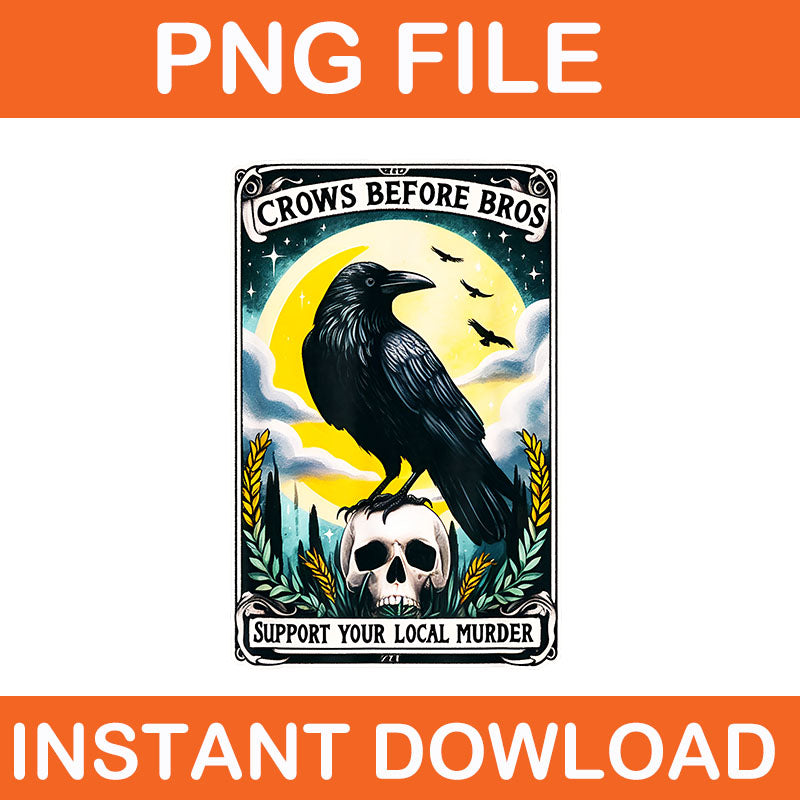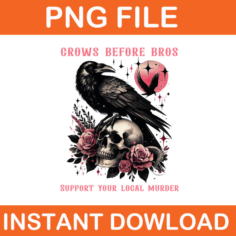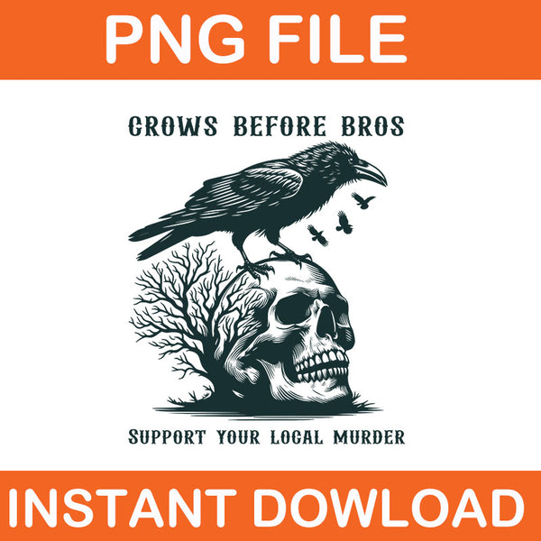 USAGE: Crows Before Bros Support Your Local Murder Skeleton Halloween PNG