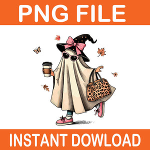 YOU MAY: Cute Boo Jee Ghost Halloween PNG, Leopard Ghost Boo-Jee Coffee PNG