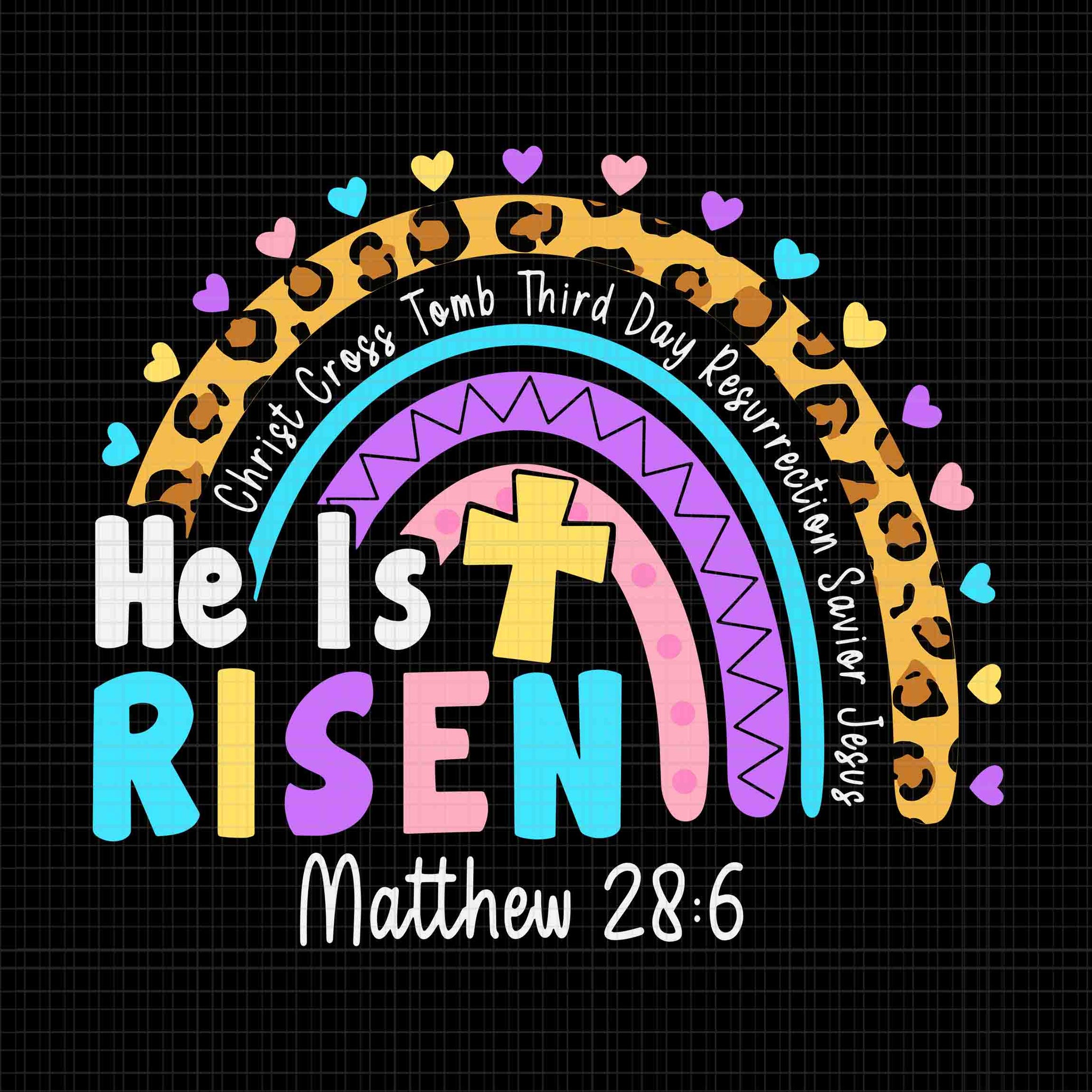 He Is Risen Matthew 28 6 Christian Svg, Rainbow Easter Svg, Easter Day Svg, Bunny Svg